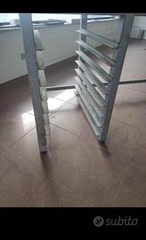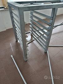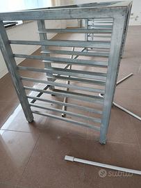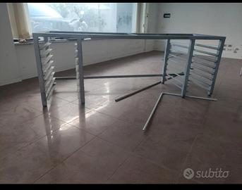 Piano top inox 250 x 80 calzata compressiva di struttura in ferro scatolato sottostante con portateglie laterali da 8 posti