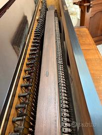 Vendo questo splendido e antico pianoforte a muro in legno massello, tenuto benissimo, ovviamente ha alcuni segni del tempo come gli aloni ai lati che probabilmente disponevano di due portacandele. Lo acquistai e lo feci arrivare dalla Germania, in questi ultimi anni lo feci accordare 2/3 volte e adesso ne richiederebbe altre ma poiché non lo uso da un po’ non l’ho fatto più accordare. Vendo insieme lo sgabello con manopola che regola l’altezza. Prezzo trattabile.