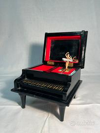 Carillon in legno a forma di pianoforte a coda, un elegante oggetto decorativo.