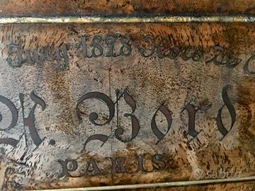 Pezzo unico di antiquariato marca “A.Bord, Paris 1878 Membre du Joury .Flors de Concours” Rivestito in radica di noce, i tasti (85) sono in madreperla .Le condizioni sono perfette, funzionante, è solo da accordare. Utilizzabile anche solo come un bel ed elegante mobile d’arredo. Lungh 130 cm, altezza 115 cm. Profondità 59 / 31 cm. Spedizione non inclusa