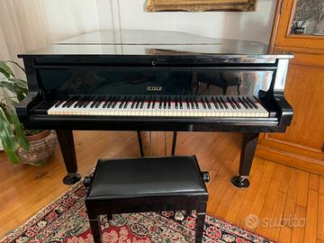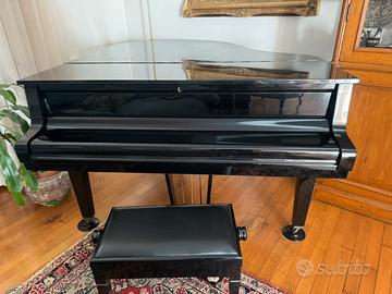 Pianoforte a mezza coda nero, marca Petrof, in ottime condizioni.