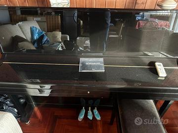 Pianoforte verticale SCHULMANN usato ottime condizioni Colore Nero / Finitura Lucido / 3Pedali Misure Larghezza cm 142 Altezza cm 115 Panca inclusa Trasporto a carico del destinatario