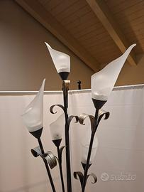 Vendo piantana a 5 luci in stile rustico, ideale per arredare ambienti caldi e accoglienti come soggiorno, taverna o studio.