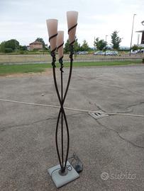 Vendo piantana a tre luci con basamento in pietra come da foto. i paralumi sono di vetro colore rosato. Realizzata con cura e perfezione. Ritiro a carico di chi acquista.