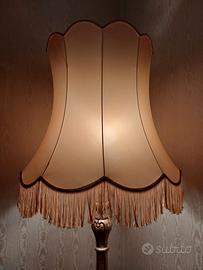 Elegante piantana in stile classico con struttura interamente in legno lavorata artigianalmente colore foglia oro-argento, con paralume in tessuto avorio. Piantana con una lampada perfettamente funzionante ed in ottime condizioni d’uso.