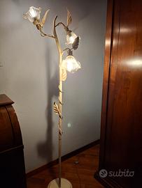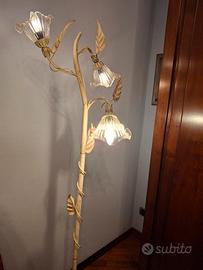 piantana in metallo color panna. ha 3 fiori che illuminano molto bella