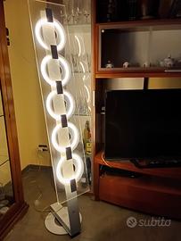 vendo piantana design da terra altezza 1.85. base zincato grigio con n.5 lampade alogene. Comprata in negozio Accademia della luce. In foto potete notare il tipo di lampada Osram perfettamente funzionante. No spedizione perché troppo delicata.