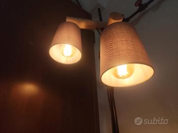 Bellissima piantana, lampada da terra vintage design, moderna in legno e metallo con 2 paralume in tela e portalampada e27 Max 60W per casa e/o ufficio. Altezza piantana 167cm Diametro base piantana 24cm