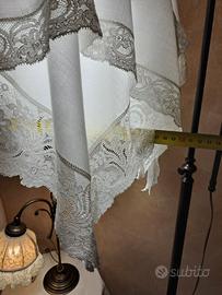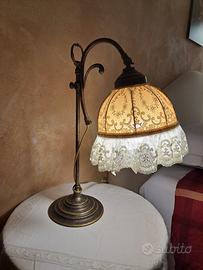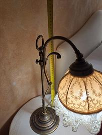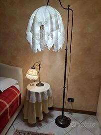 Lampada a piantana e coppia di abat jour in metallo Brunico bronzo, con paralume in tessuto e pizzo.