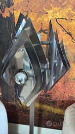 Vendo splendida lampada da terra (piantana) originale degli anni '70, storico marchio italiano di illuminazione ESPERIA. Il pezzo è caratterizzato da un design scultoreo di grande impatto, in pieno stile Space Age / Brutalista, con una struttura centrale che sorregge una serie di fogli geometrici a rombo in acciaio cromato. Crea un gioco di luci e ombre fantastico, perfetto come pezzo d'accento in un salone moderno, un loft o per appassionati di modernariato. La lampada è in ottime condizioni generali e conservata con cura, con normali e lievi segni del tempo che ne certificano l'autenticità. Misure: Altezza totale: 114 cm Larghezza base: 30 cm Disponibile per il ritiro a mano in zona Baia Domizia(CE). Nessun intermediario: gestisco io direttamente la vendita. Scrivetemi in chat per qualsiasi domanda, rispondo in tempi brevi.