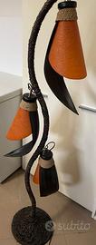 Piantana nuova mai usata stile etnico in legno e vimini, le sue luci richiamano le foglie di banano ed illuminata dona calore e luce alla tua casa o stanza