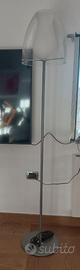 Piantana con struttura in metallo satinato. Doppio vetro, interno color bianco latte satinato esterno trasparente lucido. Attacco E27