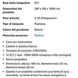Vendo piantana ikea, colore del paralume bianco, in plastica. Altezza 1,80 metri.