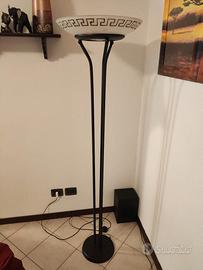 Vendo semplice ed elegante piantana in ferro battuto. Vetro opacizzato con greca decorativa. Altezza piantana: 182cm Diametro vetro: 50cm