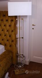 Piantana in metallo color ottone e paralume bianco