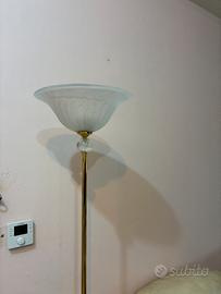 Lampada da pavimento in metallo dorato e vetro di Murano; accensioni a pedale. In eccellenti condizioni. Non spedisco