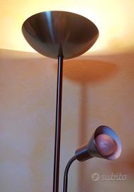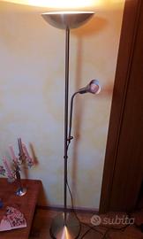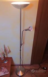 Vendo per inutilizzo una piantana a pavimento, lampada tutta in acciaio, color acciaio, doppia funzione, luce a soffitto e luce a lampada