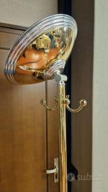Piantana dorata e solida, orientabile e dimmerabile con appendiabito incorporato.