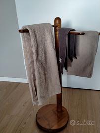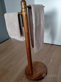 Vendo piantana porta asciugamani in legno massello tinta noce, composta da tre bracci rotabili. Le misure sono: altezza 82 cm., base di appoggio rotonda del diametro di 29 cm., lunghezza bracci 31 cm No spedizione.