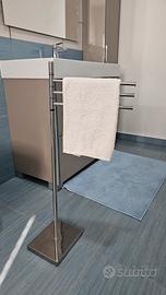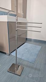 Piantana a tre bracci snodati in acciaio inossidabile cromato. --- Base rettangolare: 21×18×2.5 cm Altezza: 84 cm Lunghezza braccia: 30 cm