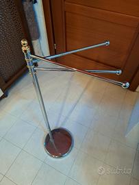 Offro bellissima piantana porta asciugamani come nuova, in acciaio inox, robusta e pesante. Presenta 3 bracci orientabili autonomamente. Le misure sono :