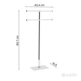 Piantana portasalviette con 2 bracci che possono slittare e permettere di posizionare asciugamani con dimensioni sia grandi che piccole.