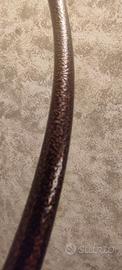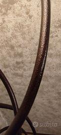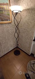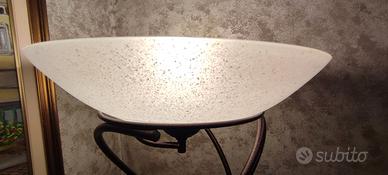 Piantana in metallo martellato Lampada da terra di grande stile, stelo in ferro battuto a sezione tonda tornita, diffusore in vetro Bellissima , ricorda il braciere dove viene posta la fiamma olimpica oppure i bracieri dell'antica Roma o Grecia. La lampada si distingue per uno stile scultoreo e sinuoso che fonde elementi classici e moderni: composta da tre aste in ferro battuto che si intrecciano verso l'alto, creando una forma a spirale organica. Diffusore: Nella parte superiore è presente una coppa (o campana) in vetro di sabbiato o acidato, che diffonde una luce morbida verso l'alto. Base: La struttura poggia tipicamente su una solida base circolare in metallo uguale al resto della lampada. Con una lampadina a luce calda , si crea un'atmosfera di confort e relax Colore marrone effetto ruggine. Altezza 177 Cm. Piatto in vetro diametro 41 Cm. Ovviamente non è possibile la spedizione ma solo la consegna a mano in zona Bergamo o Milano