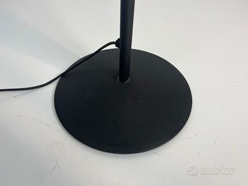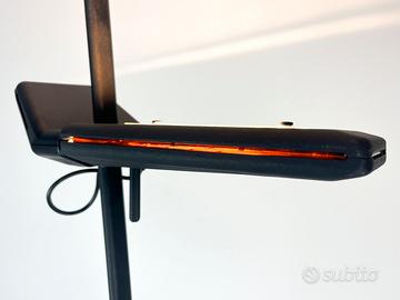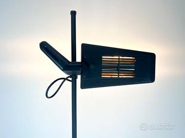 Lampada da terra alogena anni '70/'80, design di Stefano Cevoli. Presenta una struttura in metallo e diffusore formato da gusci stampati in materiale plastica nera con fessure in plastica arancio trasparente. Diffusore orientabile sull'asse orizzontale con dimmer. Funzionante. In ottime condizioni, con normali segni del tempo e utilizzo.