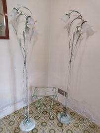 Vendo in blocco e/o separatamente due piantane a tre luci con tavolino, supporto in ferro bianco e verde anticato. Perfettamente funzionanti come da foto. €100 in blocco. No spedizione e No perditempo.