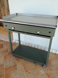 Il barbecue a gas in acciaio inox ti permette di essere pronto per cucinare in pochi minuti e di pulirlo in 5 minuti ,senza ne fumo ne odori. Il barbecue ha il piano di cottura liscio in acciaio inox 304 alimentare(spessore 6 mm), ha l’accensione con pulsante ed è facile da spostare grazie alle sue pratiche ruote. Il piano cottura viene riscaldato da 8 fuochi totali, i comandi sono separati da due rubinetti che alimentano rispettivamente 4 fuochi di destra con il rubinetto destro e 4 fuochi di sinistra con il rubinetto di sinistra entrambi con l’accensione piezoelettrica integrata. Le due zone con comandi separati per una regolazione indipendente, danno la possibilità di differenziare la temperatura quando si cucinano cibi diversi come verdure da una parte e carne dall’altra, oppure per tenere il cibo al caldo precedentemente cotto. La superficie di cottura è leggermente inclinata in modo che il residuo di cottura coli nell’apposita canaletta e convogli in un unico punto di raccolta. La piastra si può appoggiare sopra un tavolo e si può utilizzare sia in casa che all’aperto. La struttura dove appoggia la piastra è fornita con ripiano e le ruote. La piastra può essere fornita di 4 gambe (opzionali). Funzionamento a GAS GPL. Dimensioni piastra: larghezza 90 cm, profondità 50 cm, altezza da terra 100 cm, peso 40 kg circa. Spedizione non compresa. L'eventuale spedizione da concordare. Per informazioni contattatemi senza problemi. Vendo a euro 560. Prezzo non trattabile.