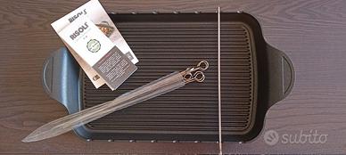 Piastra utilizzabile su piani di cottura a gas, elettrici. Ideale per barbecue e anche per il forno.