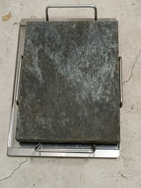 Piastra in pietra per cottura naturale completa di sottopiastra e manici in inox. Dimensioni 28 cm per 40 cm . Per cucinare senza grassi e in modo naturale