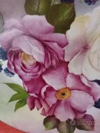 Piastra ovale in porcellana Cornice antica legno dorato e velluto dipinta a mano Lory Poma Pavia