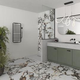 Arcana presenta infine un elegante marmo nero con sinuose venature bianche irregolari, dolcemente ondulate e piccoli tocchi dorati che aggiungono profondità. Aster-R satinato opaco fornisce una sublime setosità, e Aster- R Polished irradia una raffinatezza aggiunta equlibrata e una maggiore intensità di colore grazie alla sua lucidatura ad alta brillantezza.