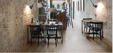 L'arte del decoro della Roma antica, dell'opus incertum e del lapis porphyrites, sono reinterpretati secondo le tecnologie contemporanee, mantenendo intatto il fascino del riuso esaltato nella serialità dell'industria. Non solo, Gordon Guillaumier sposta l'attenzione dal fintamente vero al veramente finto: in una dichiarazione di intenti che autentica l'intero percorso intellettuale del progetto. Sostituire il tozzetto di marmo con lo spacco di legno è un'operazione grafica geniale: oltre che controcorrente, rispetto al diffuso, e anche riuscito, tentativo di riprodurre l'effetto ligneo con la ceramica. In questo caso, il legno diventa texture che, per assonanza, si sostituisce ai marmi di una palladiana, diventando trama intrusa su un fondo di cemento, graniglia e pietra: proprio questa intrusione svela la ricchezza del progetto Bits, che nella declinazione Quad e Facet, propone declinazioni grafiche differenti ma storicamente impossibili. Fino a oggi.