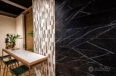 Arcana Thalassa piastrelle bagno imitazione marmo. La collezione di piastrelle in ceramica Thalassa di Arcana propone piastrelle che ricordano il marmo nero con venature bianche. Questa combinazione tradizionale di bianco e nero non si stanca mai, quindi si adatta sia agli interni classici che alle stanze moderne. Grazie al suo colore scuro, sarà la scelta giusta soprattutto per bagni di grandi dimensioni. Il trattamento superficiale resistente al gelo consente di utilizzare questa piastrella anche in ambienti esterni. I blocchi per pavimentazione Arcana Thalassa sono disponibili nelle dimensioni di 59,3x119,3 cm.