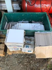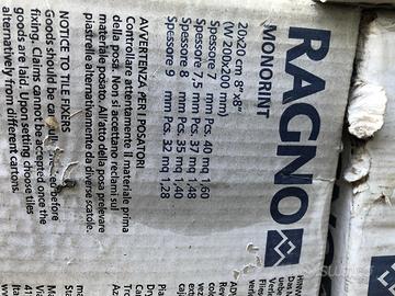 !!LEGGERE CON ATTENZIONE!! Per inutilizzo si svendono circa 31mq piastrelle per bagno (bianche e grigie) marca Vogue e Ragno di prima qualità. OTTIMA FATTURA E ESTREMAMENTE RESISTENTI Piastrelle Vogue: colore bianco ghiaccio; circa 12 confezioni; misure 20x20cm spessore 7mm; 35 pezzi in ogni confezione; 1,40mq a confezione. €/mq: 18,00 (25,20€ confezione) Piastrelle Ragno: colore grigio; circa 10 confezioni; misure 20x20cm spessore 7.5mm; 37 pezzi in ogni confezione; 1,48mq a confezione. €/mq: 16,00 (23,68€ confezione) Ritiro a carico dell’acquirente.
