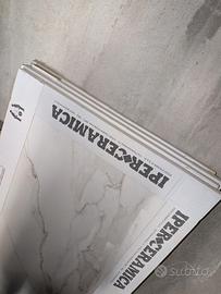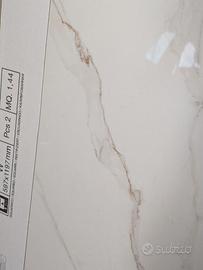 Vendesi 4 pacchi di piastrelle Calacatta gold marbles 60×120 gres effetto marmo lappato. Ogni pacco contiene 2 piastrelle per un totale di 1,44 m².