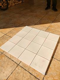 Piastrelle in ceramica da rivestimento, color acquerello (bianche con lievi riflessi verdi e rosa) adatte a piastrellare bagni e cucine. Dimensioni 20×20. Disponibilità: 23 m². CERAMICHE GRAZIA