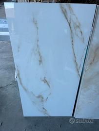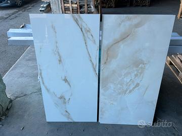 Vendo piastrelle in gres porcellanato effetto marmo, rettificate e lappate, ideali per ambienti eleganti e moderni come bagni, cucine, saloni o attività commerciali.