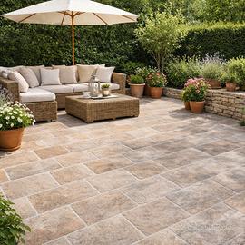 Piastrelle effetto pietra 60x30 cm – 50 mq disponibili Vendo piastrelle effetto pietra in gres porcellanato nei toni beige/avorio, ideali per pavimentazioni esterne o interne dal gusto rustico ed elegante. La superficie ha un aspetto materico naturale, con disegno a blocchi in diverse sfumature chiare, molto versatile e facile da abbinare. Caratteristiche: Formato: 60x30 cm Quantità disponibile: 50 mq Effetto: pietra naturale Colori: beige, sabbia, avorio Ideali per: terrazzi, porticati, giardini d’inverno, taverne, camminamenti, ambienti rustici o mediterranei Materiale adatto a chi cerca una finitura calda, luminosa e senza un effetto troppo moderno o freddo.