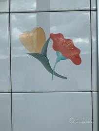 Piastrelle pennellate a mano con 8 differenti motivi floreali per un'ambiente chiaro ed armonioso. Disponibilità con fondo bianco.