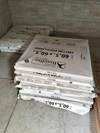 Vendo piastrelle in gres porcellanato marca Dado Ceramica 60,5 x 60,5 nuove, mai usate, effetto pietra naturale. Ogni confezione contiene 3 piastrelle (circa 1,1 m quadro). Disponibili circa 20 confezioni. Prezzo 13 euro a confezione. Ho disponibilità anche di mattonelle stesso materiale e caratteristiche, ma formato 40,6 x 40,6. Come visibile in foto, vendo anche rivestimento muro in gres porcellanato effetto mattoncino 25 x 60. Disponibili circa 20 confezioni. Vendo a 20 euro a confezione. Tutto nuovo e mai usato. Ritiro in zona a Brindisi, non disponibile alla spedizione.