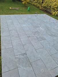 vendo piastrelle gres porcellanato da esterno effetto pietra, sono 4 pacchi da 6 piastrelle ciascuno per un totale di 4.32 metri. ogni piastrella ha una misura di 30x60 cm. regalo inoltre malta marca mapei colore grigio, circa 2 kg.