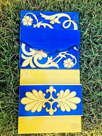 Dipinte a mano. Modello Leranto. Collezione Antichi Decori. Colori giallo, blu, arancione.