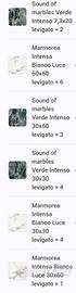 Per cambio progetto vendo piastrelle in gres porcellanato effetto marmo marca Fioranese. Tipologia, quantità e misure visibili in foto.