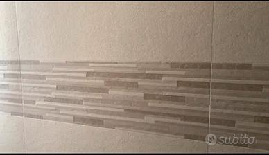 A causa di acquisto di materiale in eccesso, vendo Piastrelle rivestimento parete e pavimento bagno come segue: n. 2 scatole intatte da 4 piastrelle cad. + 2 piastrelle beige, 60x60 cm., sciolte di gres porcellanato (pavimento); n. 1 scatola intatta da 6 piastrelle cad. + 4 piastrelle, 25x75cm., sciolte di ceramica smaltata, beige chiaro (parete); n. 1 scatola intatta da 6 piastrelle cad. + 4 piastrelle, 25x75cm., sciolte di ceramica smaltata, beige scuro (parete); n. 1 scatola intatta da 6 piastrelle cad. + 3 piastrelle, 25x75cm., sciolte di ceramica smaltata, rigate beige chiaro e scuro (parete). Solo consegna a mano