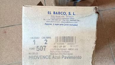 Piastrelle marca El Barco misura 20 x 20 . Colore blu con striature sul beige (n. 73), beige melange chiaro (n. 39) e decorate (n. 8). Vendita in blocco.
