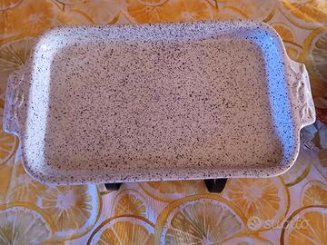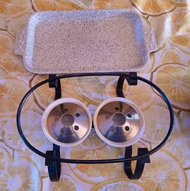 Vendo piastrello scaldavivande oggetto vintage della collezione Olio Dante. Ideato per tenere in caldo le vivande che si portano a tavola. Il set è costituito dalla base in metallo colore nero. Una piastra vassoio rettangolare in ceramica bianca puntinata effetto marmo e manici decorati con olive disegnate in rilievo. Due ciotole in ceramica bianche per scaldare. Le misure sono 22x37x14. Vendo in Torino e dintorni non spedisco