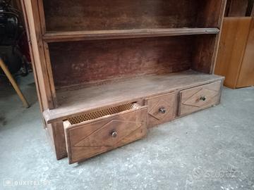 piattaia antica con cassetti in legno massello,
